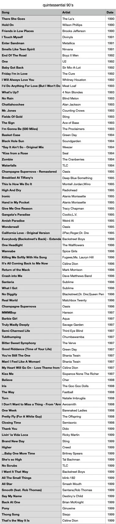 quintessential 80’s rock and roll request list